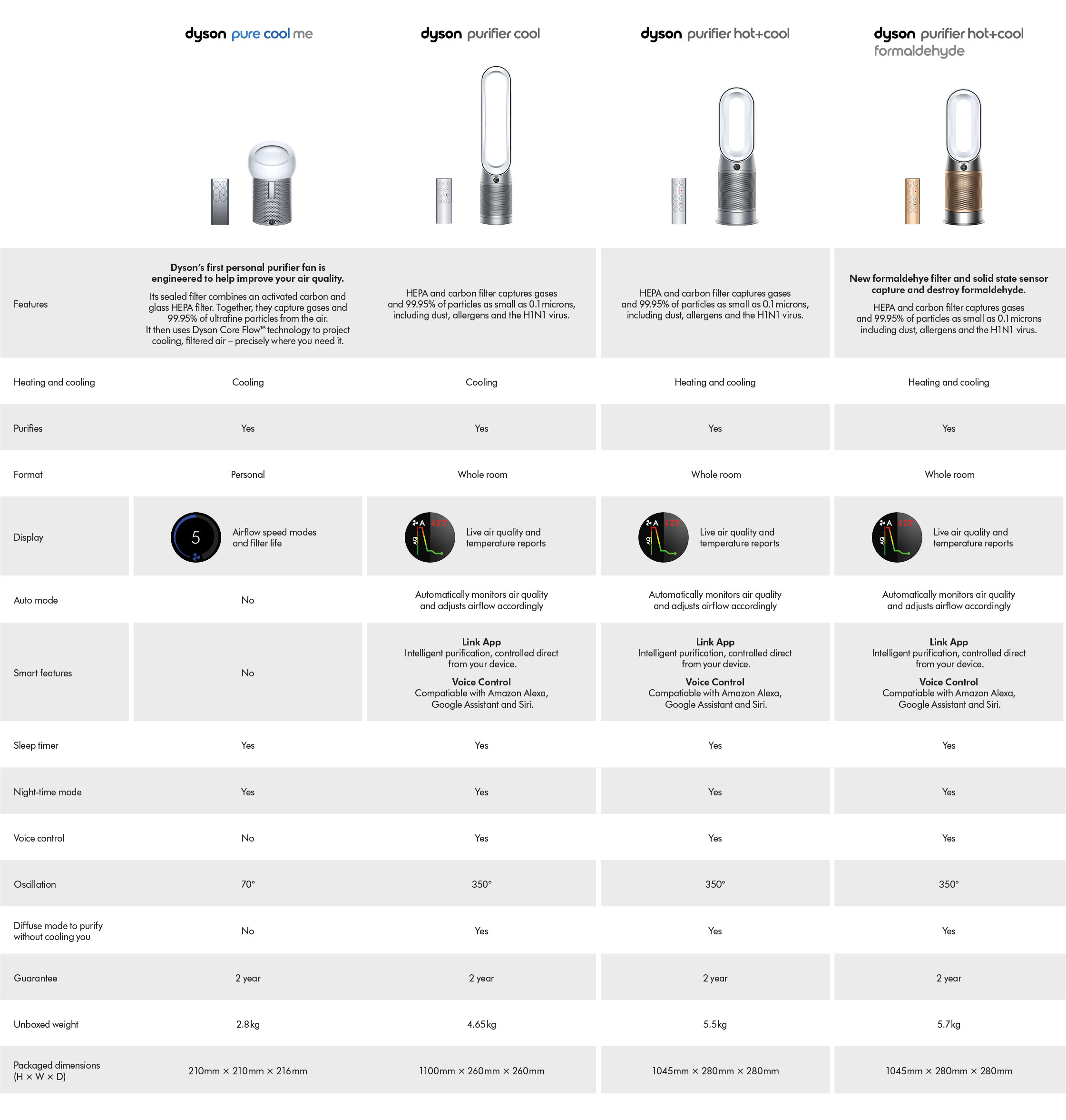 Intelligent purification, controlled by app or voice Control and monitor air quality from anywhere with the Dyson Link app,6 or hands-free with compatible voice services.7