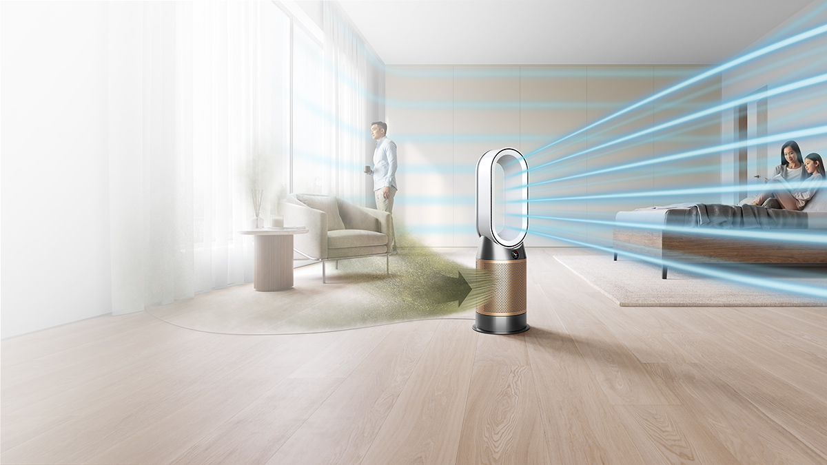 Heats in winter. Cools you in summer. In winter, Air Multiplier™ technology projects purified, heated air throughout the room.3 Once your target temperature is reached, heating automatically stops. In warmer weather, Air Multiplier™ projects over 290 litres of air a second for cooling airflow.