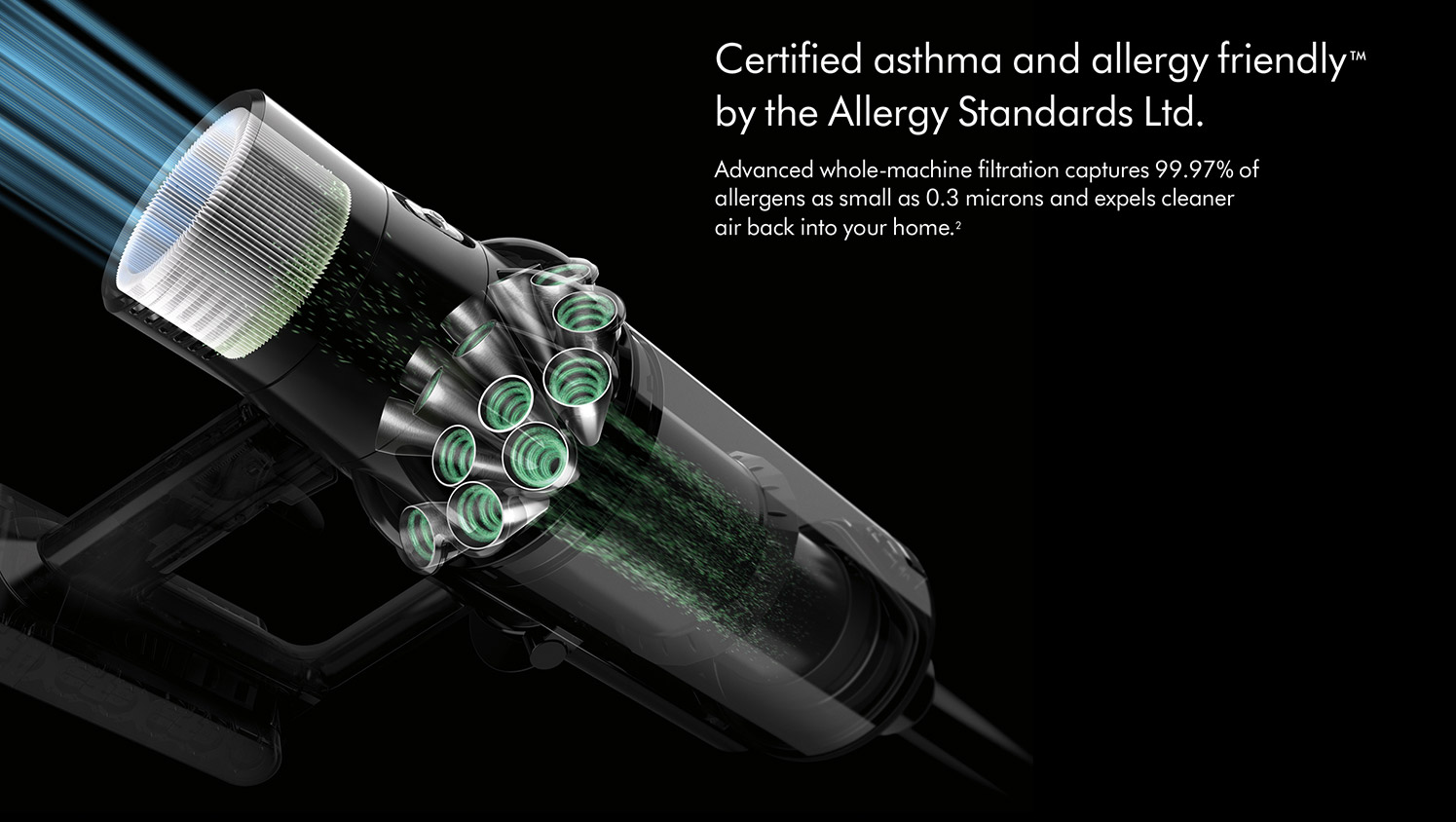 With advanced whole-machine filtration, the V10ANIMAL is certified asthma and allergy friendly™, so that everyone in your home can breathe easily. The filter is also washable, keeping vacuum cleaner maintenance quick and simple.