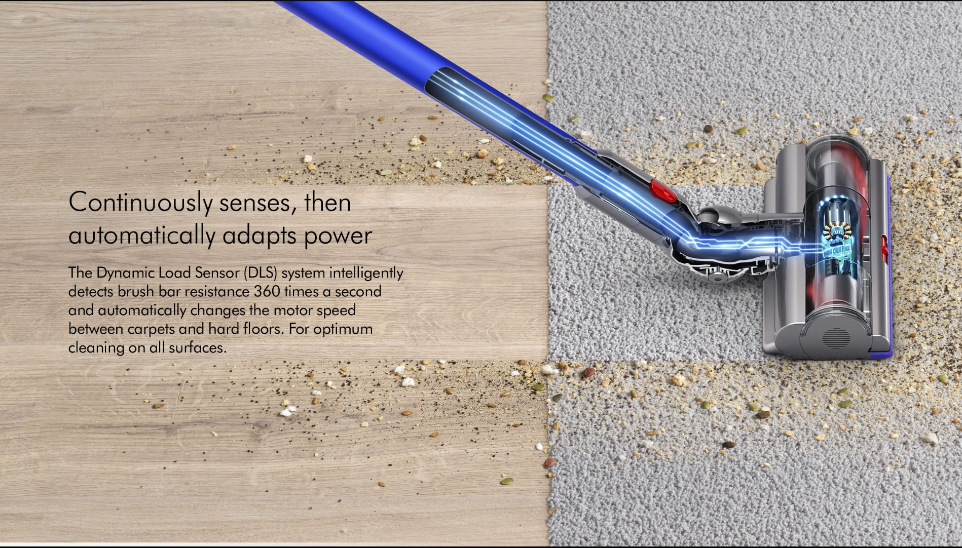 In the Torque Drive cleaner head, youll also find Dynamic Load Sensor technology, which optimises suction automatically for all floors so that they always receive the best suited clean. And, if youre a household with pets, then the V11 Torque Drive will remove stubborn hair too.